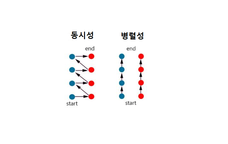- 병렬성 : 각 작업이 멀티코어 환경에서 물리적으로 동시에 실행
